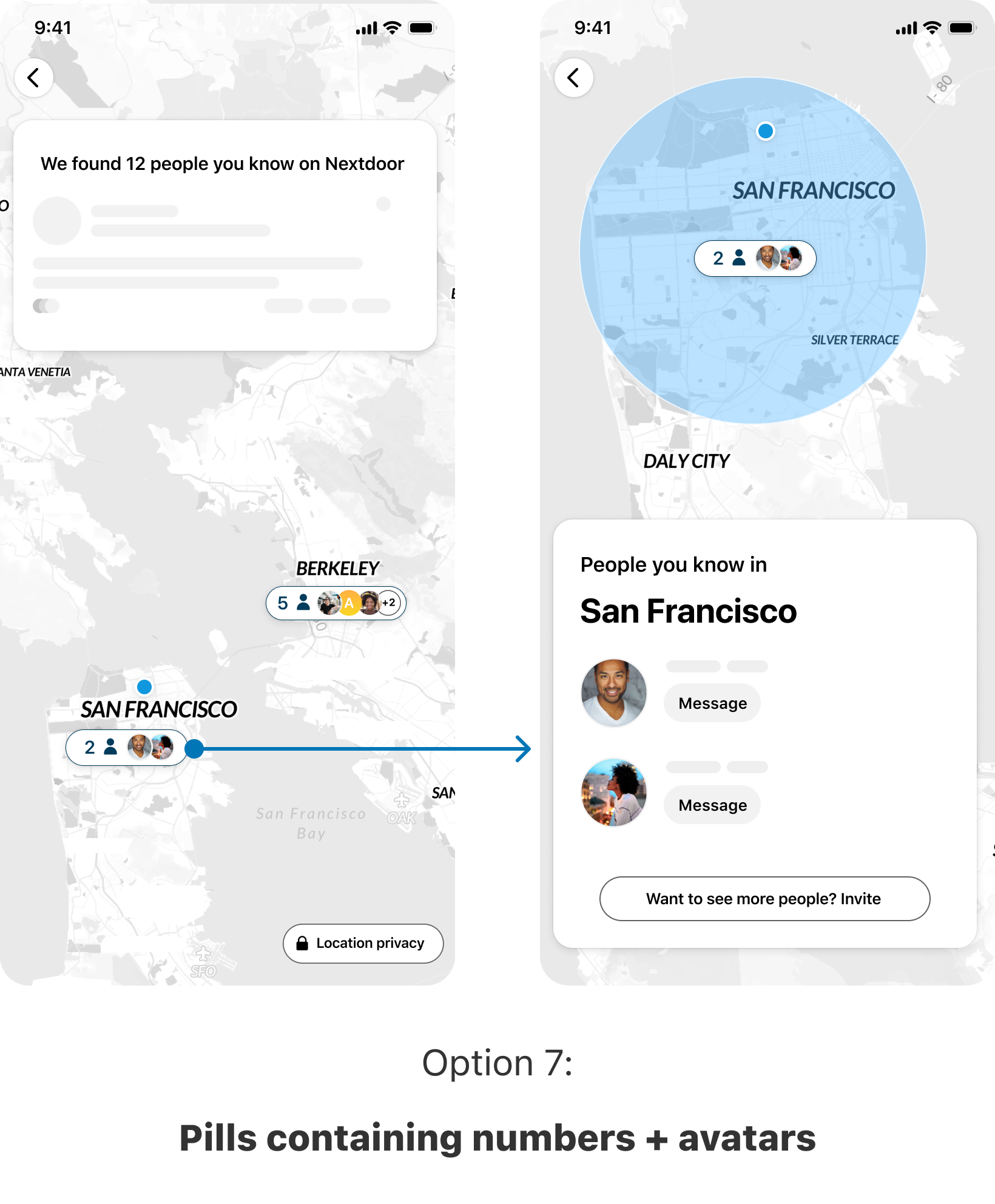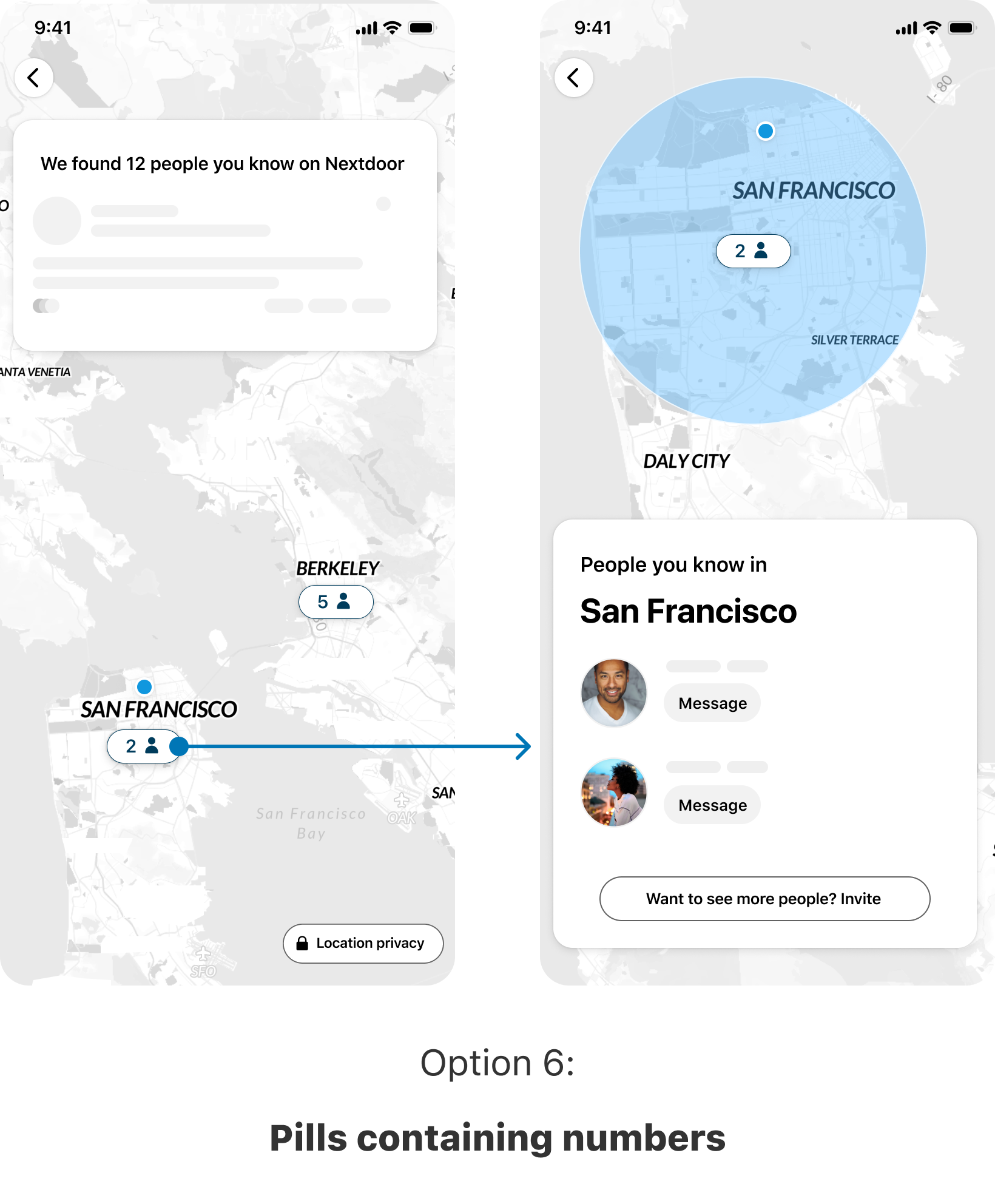 But before diving deeper, we wanted to validate the need for this concept. So, we A/B tested the contact sync prompt. The option on the left (control) is what we had before. The option on the right (treatment) is the new concept. It has a map visual and a different messaging.