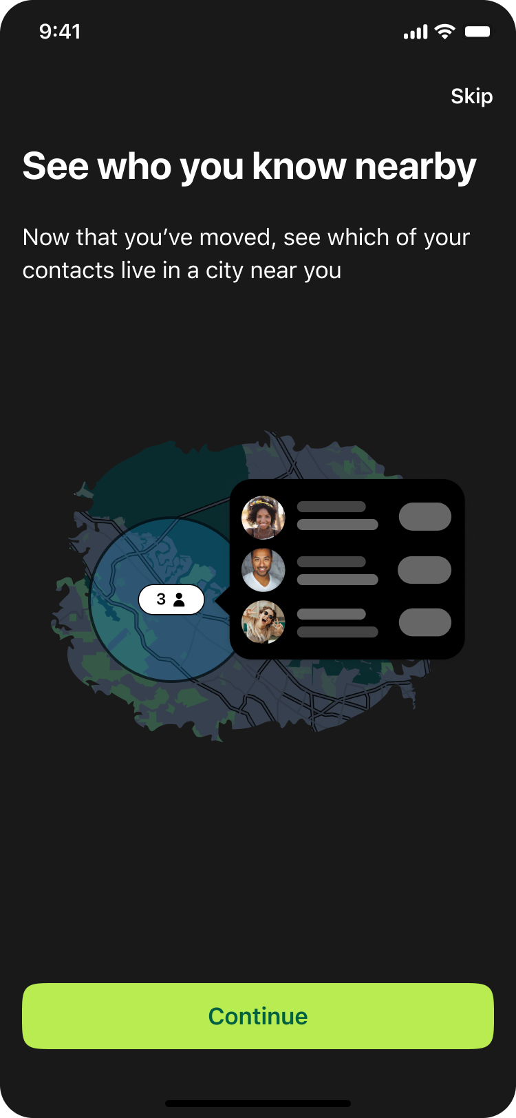 - “I moved to a new city / neighborhood and want to see if any of my old friends / acquaintances live nearby.”