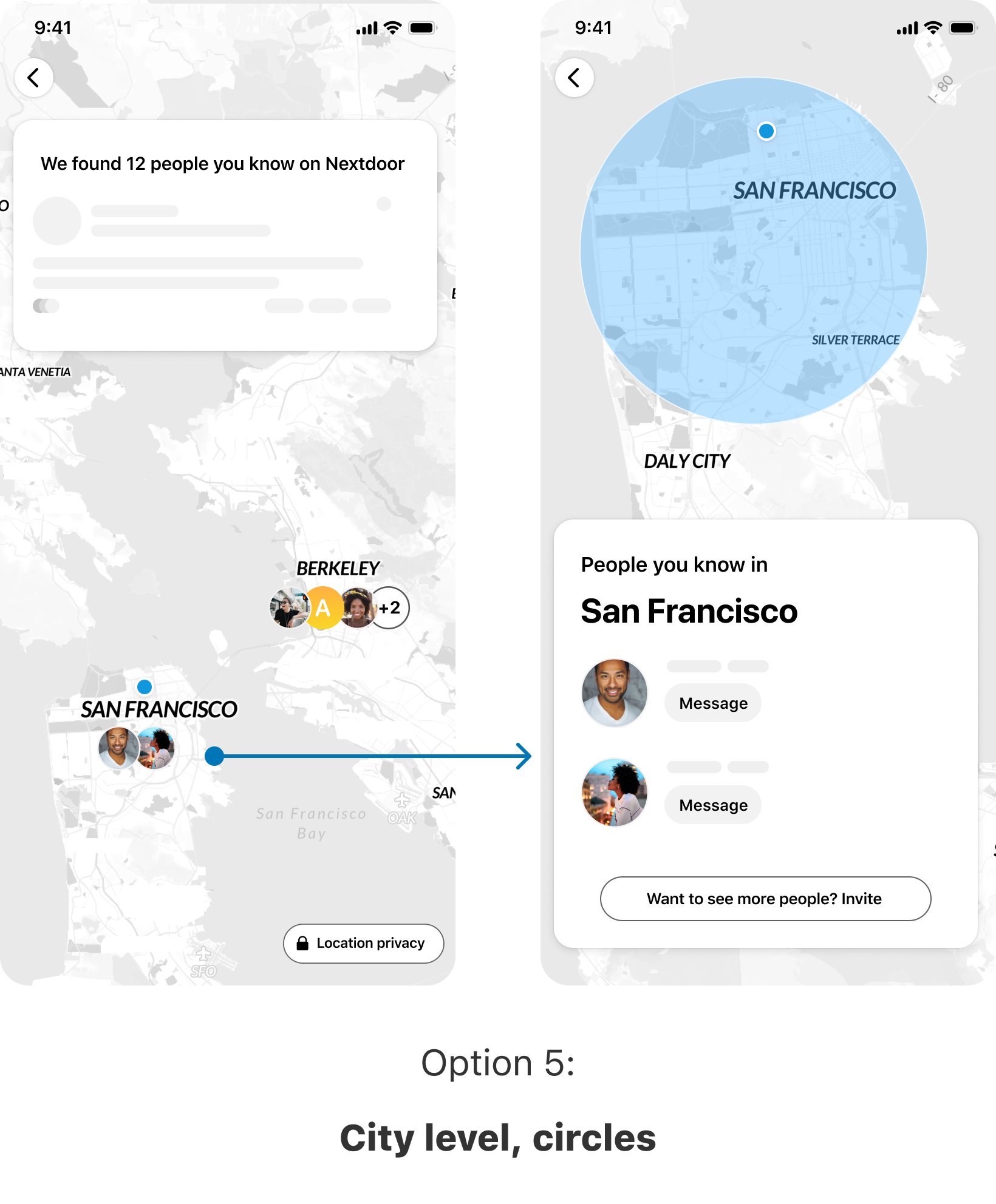 But before diving deeper, we wanted to validate the need for this concept. So, we A/B tested the contact sync prompt. The option on the left (control) is what we had before. The option on the right (treatment) is the new concept. It has a map visual and a different messaging.