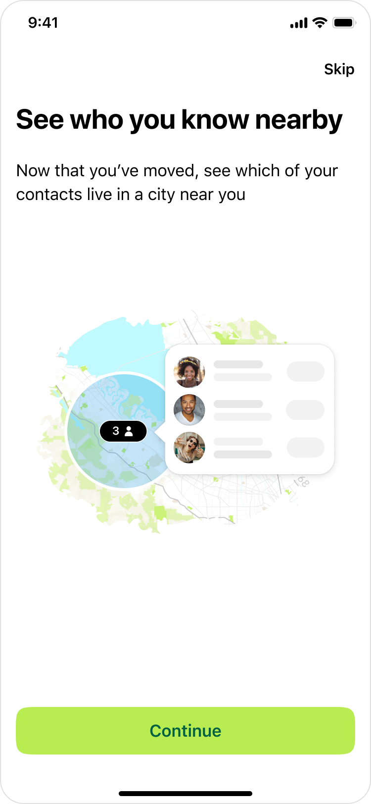 - “I moved to a new city / neighborhood and want to see if any of my old friends / acquaintances live nearby.”