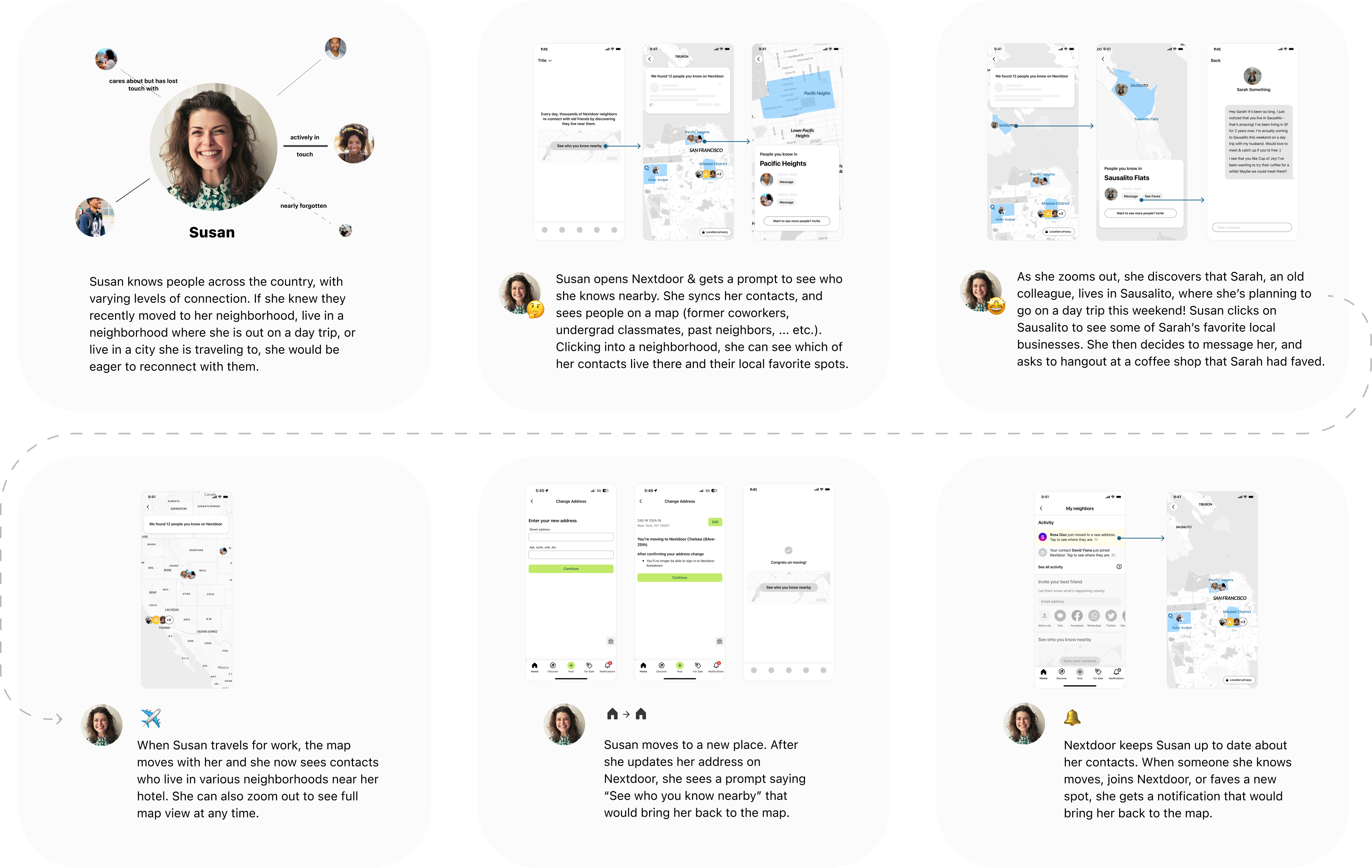 My product manager and I collaborated on writing a user journey about a hypothetical user named Susan & how she interacts with this feature. I also designed early sketches to go along the story. We had multiple goals behind this exercise: